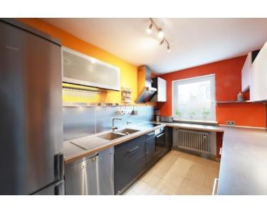 Das ungewöhnlich große Reiheneckhaus mit ca. 11,5 Meter Tiefe und ca. 6,25 Meter Breite wurde 1979 in gesunder Ziegelbauweise errichtet. 2007 sind umfangreiche und hochwertige Renovierungsmaßnahmen wie z.B. der Einbau neuer Fenster, neuer Mamorboden und neuer Kamin im Wohnzimmer, Erneuerung der Bäder und der Heizung, durchgeführt worden. Über den großen Eingangsbereich mit Gäste-WC gelangen Sie in die Küche. Das Highlight des Hauses ist der ca. 46qm große Wohn-/Essbereich mit Kamin und Marmorboden und großer Fensterfront mit direktem Zutritt zu der 2013 erneuerten Terrasse und den schön eingewachsenen Südgarten mit Teich. Gerade im Sommer lädt die Terrasse mit Blick ins Grüne zum Verweilen ein. Der große, angrenzende WEG-Gemeinschaftsgarten kann mitbenutzt werden.