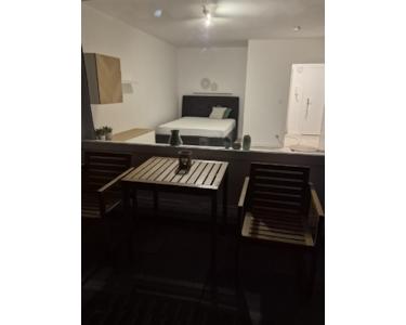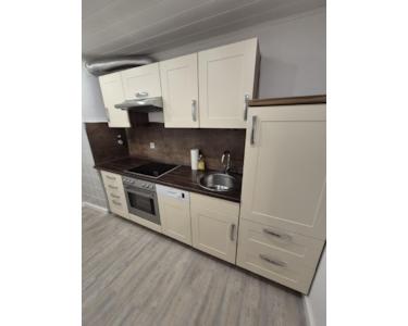 Eigener Treppenaufgang zur Wohnung, möbelierte Wohnung mit Schlafniesche, geräumiger Flurschrank, renoviertes Bad mit Glasdusche (fensterlos), Panoramafester (3-fach Verglasung), Küche nit Backofen, 4-Plattenkochfeld, Geschirrspüler, Kühlschrank mit Gefrierfach, Dunstabzug, Waschmaschienenanschluss, Trockenraum,