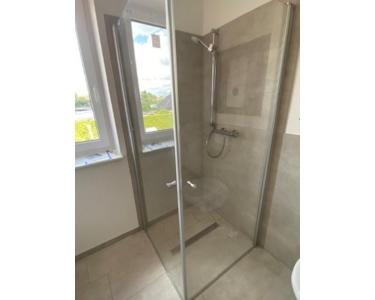 - Bad mit Echtglas-Dusche und Badewanne
