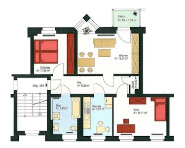 Praktische 3-Zimmer-Wohnung mit Balkon.