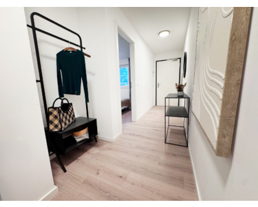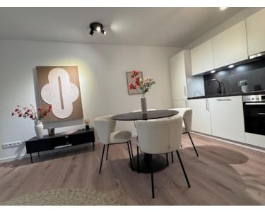 Eine exklusive Einbauküche mit modernen Großgeräten ist im Mietpreis bereits enthalten. Der Designvinylboden in Holzoptik verleiht den Räumen eine warme Atmosphäre und ist gleichzeitig pflegeleicht und langlebig. Im Badezimmer schaffen elegante Designfliesen im Format 60x60 cm ein modernes und stilvolles Ambiente. Für Sicherheit und Komfort sorgt eine Videogegensprechanlage. Elektrische Rollläden ermöglichen eine einfache Lichtregulierung, während die Fußbodenheizung in allen Räumen für behagliche Wärme sorgt.