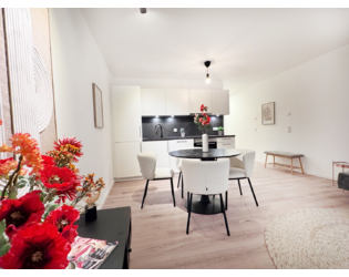 Eine exklusive Einbauküche mit modernen Großgeräten ist im Mietpreis bereits enthalten. Der Designvinylboden in Holzoptik verleiht den Räumen eine warme Atmosphäre und ist gleichzeitig pflegeleicht und langlebig. Im Badezimmer schaffen elegante Designfliesen im Format 60x60 cm ein modernes und stilvolles Ambiente. Für Sicherheit und Komfort sorgt eine Videogegensprechanlage. Elektrische Rollläden ermöglichen eine einfache Lichtregulierung, während die Fußbodenheizung in allen Räumen für behagliche Wärme sorgt.