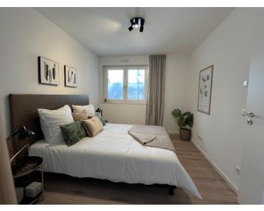 Diese lichtdurchfluteten Wohnungen überzeugen durch einen eleganten Vinylboden in heller Holzoptik und freundlich geflieste Badezimmer. Zur Ausstattung gehört eine moderne Einbauküche mit allen Elektro-Großgeräten. Für ein angenehmes Wohnklima sorgt die Fußbodenheizung.