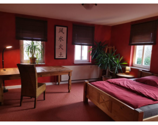 Gemütliches Wohnen auf Zeit mit dem Charme vergangener Zeiten. Diese Wohnung in einem historischen Bauernhaus von 1885, das total saniert und modernisiert wurde, ist für Wochenendheimfahrer, die im Gewerbegebiet von Arnstadt arbeiten, ideal geeignet. Das ca.34 m² große, voll möblierte Einraum-Appartment mit Bad und abgeschlossener Küche mit Essplatz liegt im 1.Obergeschoss des historischen Bauernhauses. Über die von der Eigentümerin liebevoll ausgestattete Eingangsdiele gelangen Sie zu Ihrem abgeschlossenen Appartment. Über den eigenen Eingang betreten Sie einen kleinen Flur von dem Sie jeweils in das Wohn-/Schlafzimmer, das Bad und die Küche gelangen.
