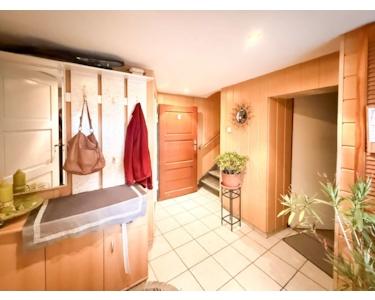 Das erste Obergeschoss überzeugt durch einen großen, hellen Flur, der zu allen Räumen führt. Darunter ein geräumiges Schlafzimmer mit Deckenspots, ein zweites Badezimmer mit Fenster, Dusche, WC und Waschbecken, eine Küche mit Einbauküche, die vollständig mitverkauft wird, ein großzügiges Wohnzimmer sowie ein weiteres Zimmer, das sich ideal als Arbeits-, Kinder- oder Schlafzimmer eignet.