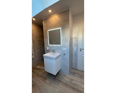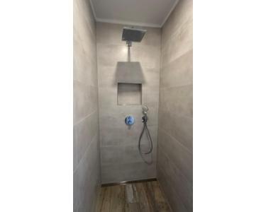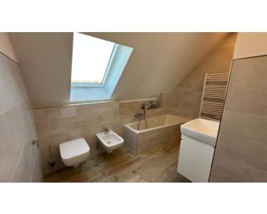 - ebenerdige Dusche mit Duschrinne, Bidet und Badewanne