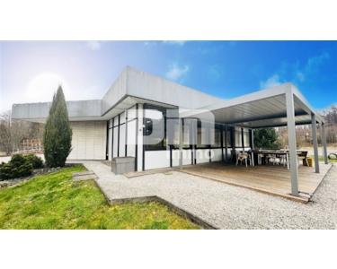 Ein zusätzlicher Pavillon BJ 1984 beherbergt weitere Sozialräume in Form eines vollausgestatteten Fitnessraumes, Teeküche, Ausstellung mit abgetrenntem Empfang, zwei WC-Räumen und Terrasse BJ 2023 mit Lamellendach und Bankiraiboden.