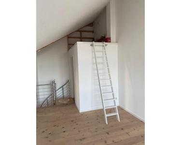 Im unteren Bereich der Wohnung befindet sich das 37m² große Wohnzimmer mit Balkonzugang und offener Küche, ein 9m² großes Arbeits-/Gästezimmer und eine Gästetoilette. Über die werthaltige Massivholz - Wendeltreppe gelangen Sie in den oberen Teil der Wohnung, welcher in der Aufteilung absolut perfekt gestaltet ist. Durch die große Fensterfront im Schlafbereich werden Sie bereits am Morgen von der Sonne begrüßt. Ein begehbarer Schrank und das Nutzen des Raumes darüber als gemütliche Bücherecke und Leseplatz dienen als Stauraum und zusätzliche Rückzugs- oder Schlafmöglichkeit. Ein großzügiges helles Wohlfühlbadezimmer lädt zum Entspannen ein Verweilen ein.