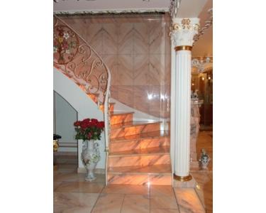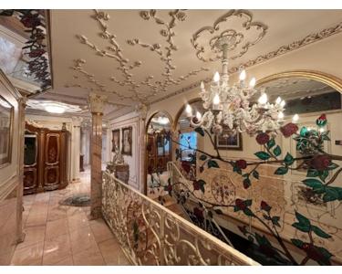 Durch den exklusiven Edelweiß/rosa Marmor Boden in Schmetterling Bilder ausgelegt, und den wunderschönen Stuck (Barock und Rokoko Stil) an den Wänden und Decken, fühlt man ein Hauch von Luxus.