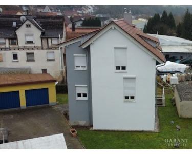 Es handelt sich um ein Wohnhaus aus den 1950er-Jahren. Dieses wurde nach 2010 komplett entkernt. Der Neuaufbau begann in zwei Etappen: die Gebäudehülle und die Erdgeschosswohnung. Beides ist fertiggestellt. Das Dach ist neu gedeckt, die Fenster sind neu, die Fassade ist wärmegedämmt und der Kaminfeger freut sich über einen neuen Schornstein. Außerdem wurde die Erdgeschosswohnung komplett neu ausgebaut.