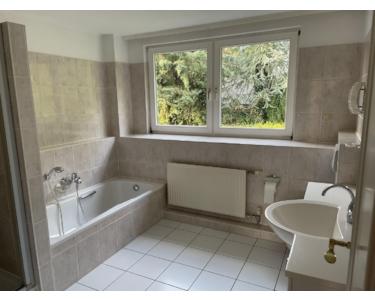 In den Obergeschossen finden sich 3 große Zimmer sowie ein modernes Badezimmer mit Badewanne und getrennter Dusche. Eines der Zimmer verfügt noch über einen direkt angrenzenden Abstellraum, welcher problemlos als begehbarer Kleiderschrank genutzt werden könnte. Eines der Zimmer befindet sich im komplett ausgebauten Dachgeschoss und bietet damit einen zusätzlichen Raum, der als Rückzugsort für Jugendliche oder Arbeitszimmer geradezu prädestiniert ist.