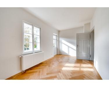 Schon beim Betreten spürt man die besondere Atmosphäre: Hohe Decken, edles Fischgrät-Parkett und sorgfältig aufbereitete originale Treppen und Fenster verleihen dem Haus eine herrschaftliche Ausstrahlung.