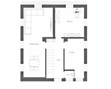 Im Erdgeschoss des Hauses befinden sich das Wohnzimmer, das Esszimmer sowie die separate Küche. Darüber hinaus steht hier ein Gäste-WC zur Verfügung.
