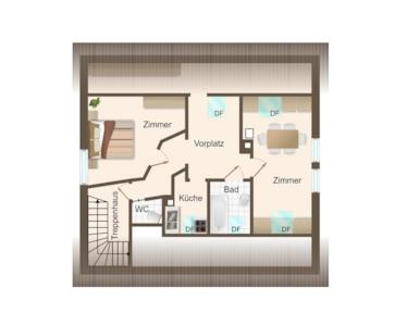 - Möblierte 2,5-Zimmer-Wohnung im Dachgeschoss inkl. kompakter Einbauküche
