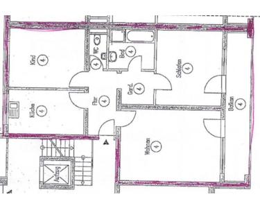 - - ca. 87 qm Wohnfläche verteilt auf 3 Zimmer, Küche, Bad, WC
