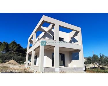 Auf einem Grundstück von 619 m2 wird eine freistehende Villa mit modernem Design und funktionalem Grundriss mit einer Nettofläche von 187,33 m2 gebaut. Es erstreckt sich über zwei Etagen: Erdgeschoss + erster Stock. Im Erdgeschoss gibt es eine Eingangshalle, eine Toilette, einen Abstellraum mit Außeneingang, eine geräumige Küche mit Esszimmer und ein Wohnzimmer mit Zugang zu einer überdachten Terrasse, wo sich ein 24 m2 großer Swimmingpool und eine großzügige Liegewiese befinden Fläche von ca. 100 m2. Eine Innentreppe führt zur Etage, wo sich eine Waschküche und drei komfortable Schlafzimmer mit eigenem Bad befinden, von denen zwei Zugang zu einer eigenen Terrasse mit herrlichem Blick auf das Meer haben. Im schön angelegten Hof mit viel Grün wird es auch eine gepflasterte Fläche von ca. 100 m2 geben, auf der mehrere Autos untergebracht werden können.