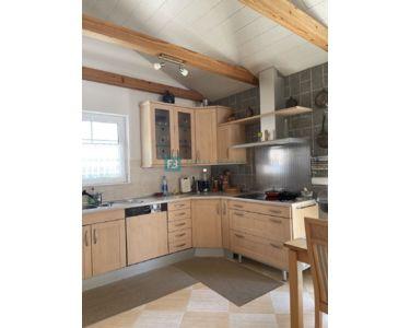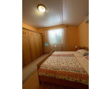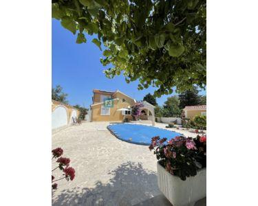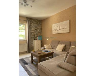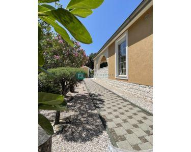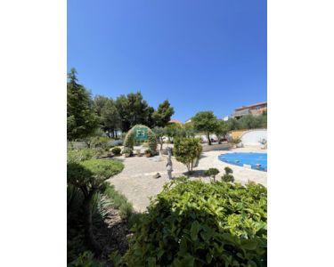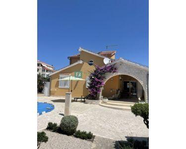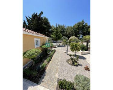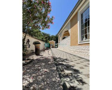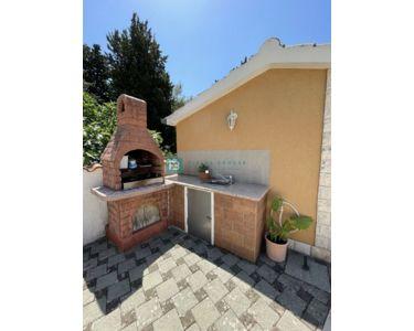 Freistehendes Haus, komplett eingerichtet und möbliert, mit Swimmingpool und großem Garten. Das Haus besteht aus zwei Etagen (Erdgeschoss und erster Stock) mit einer Gesamtwohnfläche von 218 m2, gebaut auf einem Grundstück von 1094 m2. Im Erdgeschoss befinden sich eine Küche und ein Esszimmer mit Zugang zu einer überdachten Terrasse, sowie ein Wohnzimmer, ein Flur, ein Abstellraum, eine Waschküche, eine Toilette, ein Badezimmer und zwei Schlafzimmer. Der Maschinenraum mit Brandschutztüren und die Garage sind mit dem Erdgeschoss verbunden. Eine Innentreppe aus Brac-Stein führt in den ersten Stock, wo sich 2 Schlafzimmer, ein Badezimmer, ein Arbeitszimmer mit Dachschräge und eine Terrasse befinden.