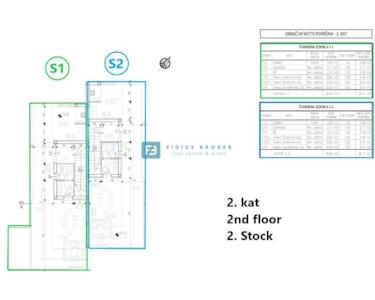 Haus S2 mit einer Gesamtnutzfläche von 252 m2 + einem Hof von ca. 70 m2 besteht aus vier Etagen: Keller + Erdgeschoss + 1. Stock + 2. Stock. Im Keller gibt es einen Abstellraum und ein Treppenhaus. Das Erdgeschoss besteht aus einem Eingangsbereich, Flur, Treppenhaus, Badezimmer, geräumigem Wohnzimmer, Küche und Esszimmer mit Zugang zu einer überdachten Terrasse von 10,10 m2. Die Innentreppe führt in den 1. Stock, wo sich drei Schlafzimmer und drei Badezimmer befinden (jedes Zimmer hat ein eigenes Badezimmer) und ein Zimmer Zugang zur Terrasse hat. Im 2. Stock gibt es einen Abstellraum, eine Toilette, eine Sommerküche und eine großzügige Dachterrasse von 54,56 m2 mit Blick auf die Stadt. Das Haus verfügt über zwei Parkplätze.