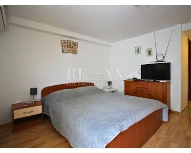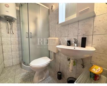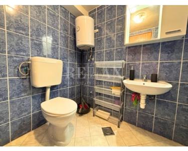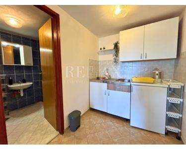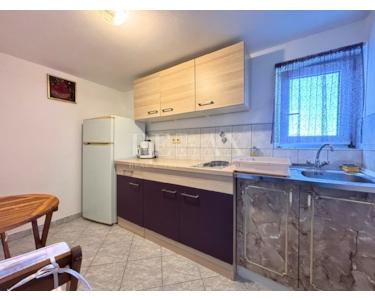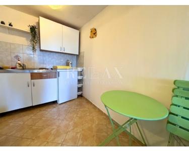 Im Erdgeschoss befinden sich zwei Studio-Apartments, während sich im Obergeschoss eine Wohnung mit Wohnzimmer, Küche mit Essbereich, zwei Schlafzimmern, Badezimmer sowie einem Balkon mit freiem Blick auf das Meer und die Brücke zur Insel Krk befindet. Das Objekt ist nach Südwesten ausgerichtet, was den ganzen Tag über für reichlich natürliches Licht sorgt.