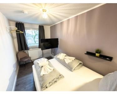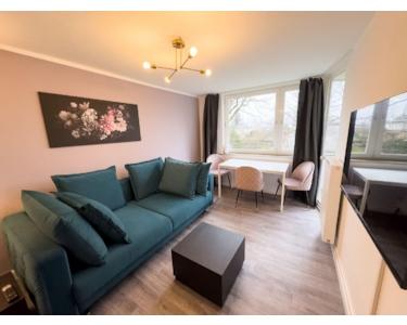 Die Wohnung ist voll möbliert und bietet alles, was man für einen komfortablen Einzug benötigt – ganz ohne Aufwand. Jedes Zimmer ist mit einem Bett, Smart-TV, Schreibtisch, Bürostuhl, Nachttisch, Beleuchtung sowie einem Kleiderschrank ausgestattet.