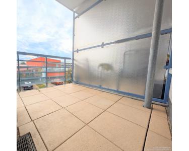 Das helle, großzügige Wohnzimmer mit direktem Zugang zum Balkon schafft eine angenehme Wohnatmosphäre und bietet ausreichend Platz für eine individuelle Möblierung. Das ruhig gelegene Schlafzimmer mit bodentiefem Fenster sorgt für viel Tageslicht und ein behagliches Wohngefühl.
