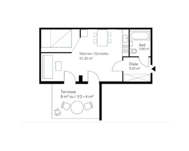 Bitte beachten: Die Wohnung wird ausschließlich möbliert und zunächst max. für 1 Jahr vermietet!