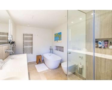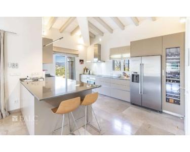 Die unteren Etage beherbergt die weiteren fünf Schlafzimmer, darunter die Master-Suite mit privatem Badezimmer. Alle Schlafzimmer haben direkten Zugang zum wunderschönen Außenbereich. Dieser bietet einen gepflegten Garten mit mediterranen Obstbäumen, einen großen Swimmingpool, eine Außenküche sowie mehrere sonnige Terrassen, die zum Entspannen und Verweilen einladen.