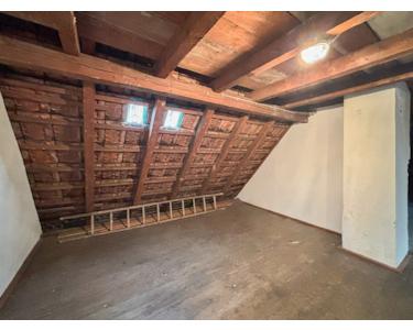 Im Inneren erwartet Sie eine gemütliche Wohnatmosphäre, die durch sichtbare Holzbalkenelemente in einigen Räumen des Erdgeschosses zusätzlich unterstrichen wird. Die Etagen sind über eine schöne, alte Holztreppe miteinander verbunden. Das Wohnzimmer bildet das Herzstück des Hauses – hier sorgt ein Kaminofen an kühleren Tagen für wohlige Wärme und schafft eine behagliche Stimmung. Ergänzt wird die Wärmeversorgung durch eine moderne Gastherme, die erst 2020 erneuert wurde. Das Badezimmer präsentiert sich in einer angenehmen Größe und ist in einem zeitlos-neutralen Stil gehalten, sodass es problemlos an individuelle Gestaltungsvorlieben angepasst werden kann. Ein weiterer Pluspunkt: Im Dachgeschoss besteht die Möglichkeit, zusätzlichen Wohnraum zu schaffen – ideal für ein weiteres Schlafzimmer. Zu beachten ist, dass die Deckenhöhe in einigen Wohnräumen teilweise nur etwa 2 Meter beträgt, was jedoch dem wohnlichen Charakter keinen Abbruch tut.