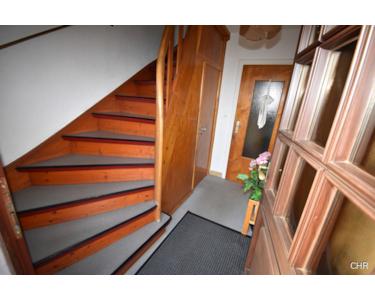 Aber gehen wir zuerst ins Haus. Über ein paar Stufen gelangt man in das Treppenhaus von dem aus man zentral in das ausgebaute Ober- / Dachgeschoss, sowie auch in den Keller gelangt