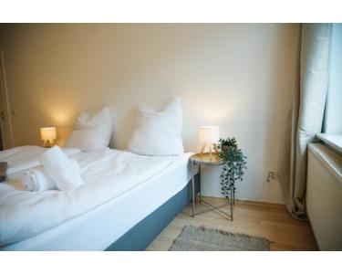 Die Wohnung bietet Platz für bis zu 6 Personen. Alle Betten sind Einzelbetten, die sich nach Bedarf zusammen- oder auseinanderschieben lassen – ideal für Monteure, Geschäftsreisende oder Freundesgruppen.