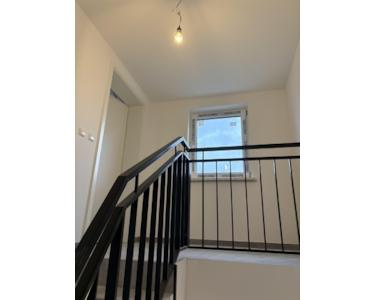 - Treppenhaus gefliest und mit hochwertigem Absturzgeländer anthrazit im französischen Stil