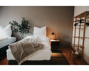Gemütliche 2-Zimmer-Wohnung im 2. OG mit Balkon – der perfekte Ort, um nach einem langen Arbeitstag oder einer ausgiebigen Radtour durch die Natur aufzutanken. 4 flexible Einzelbetten bieten Komfort für Monteure, Geschäftsreisende, Familien oder Freundesgruppen. In der voll ausgestatteten Küche lassen sich gemeinsame Mahlzeiten zubereiten, während das Bad mit Wanne und das separate WC für extra Komfort sorgen. Abends lädt der Balkon dazu ein, den Tag entspannt ausklingen zu lassen.