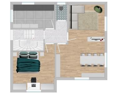 - - DG: Wohnzimmer, 2 Schlafzimmer, Küche, WC