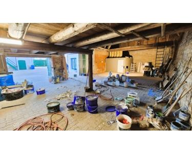 Alle Gebäude befinden sich kompakt in einem abgeschlossenen Hof, der Privatsphäre bietet und sich ideal für große Familien, Handwerker, Selbständige oder Freizeitliebhaber eignet.