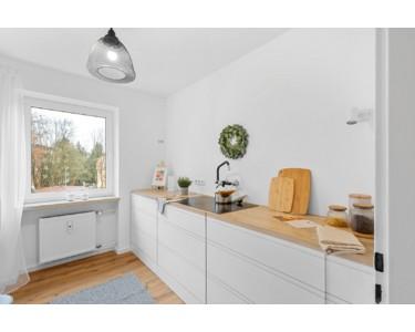 Die Küche ist räumlich getrennt und bietet ausreichend Platz für die Umsetzung einer individuellen Einbauküche. Ein Fenster gewährleistet sowohl Tageslicht als auch eine gute Belüftung und unterstützt einen funktionalen Küchenalltag.