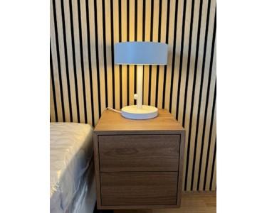 Schlafen/Arbeiten: Doppelbett 180×200 cm mit Stauraum, großer Kleiderschrank, kleiner Arbeitsplatz.