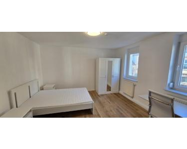 Das Zimmer ist ca. 20 Quadratmeter groß und komplett möbliert mit 140cm x 200cm Bett, 2 Nachtschränken, 1 Nachttischlampe, höhenverstellbarer Schreibtisch, Stuhl, Kleiderschrank und Regal. Dank der großen Fenster ist es hell und freundlich. Die WG verfügt über eine voll ausgestattete Küche mit Kühlschrank, Gefrierschrank, Herd, Backofen, Geschirrspüler und allen notwendigen Küchenutensilien. Das Badezimmer ist modern gefliest und wird gemeinschaftlich genutzt.