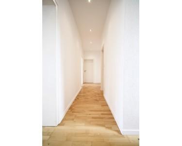 Die Wohnung wurde in 2011 saniert und in 2021 erneut renoviert. Es ist überall (außer im Bad) Parkett verlegt. Decken und Wände sind mit Raufaser tapeziert, in Flur und Bad sind in den Decken Halogenspots eingelassen und die Warmwasseraufbereitung erfolgt über einen zentralen Durchlauferhitzer. Für die Gas-Etagenheizung muss ein eigener, separater Liefervertrag abgeschlossen werden. Die auf den Fotos zu sehende Einbauküche mit weißen Hochglanzfronten, vollintegrierter Spülmaschine, Backofen/Cerankochfeld und Gefrierkombination (Neff bzw. Siemens Geräte) ist in der Kaltmiete mit enthalten.