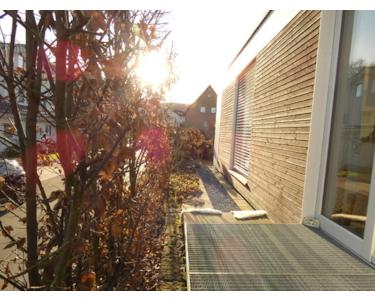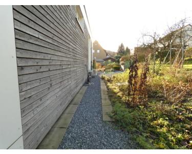 Seitlich des Hauses befindet sich ein PKW-Stellplatz. Von hier aus können Sie ebenfalls in den Garten und zur Terrasse gelangen.