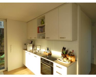 Durch optimal integrierte Einbaumodule im Haus wurde Stauraum geschaffen, so dass der notwendige Platz für Waschmaschine und Abstellmöglichkeiten gegeben ist.
