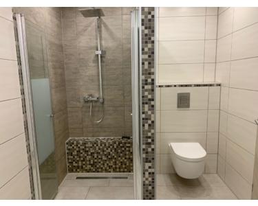 - Bad mit Eckbadewanne, ebenerdige Dusche und WC