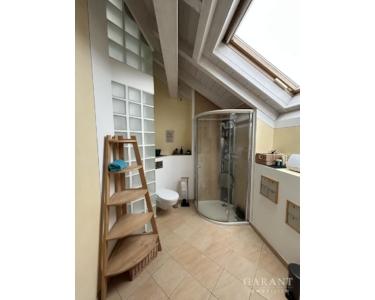 Im Dachgeschoss erwartet Sie ein großes Wellness-Badezimmer mit Whirlwanne und Sauna - der perfekte Ort, um abzuschalten. Die drei schönen Schlafzimmer mit Sichtdachstuhl sind großzügig geschnitten. Die beiden Kinderzimmer haben Balkonzugang, eines verfügt über eine Schlafgalerie, das Elternzimmer über eine Ankleide.