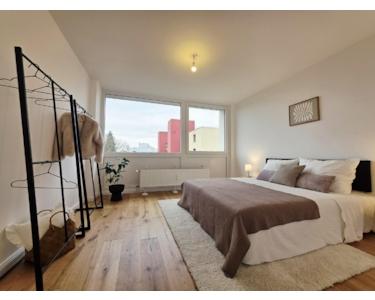 Bemerkungen:- Stilvoll sanierte Eigentumswohnung mit Sonnenbalkon- Baujahr: ca. 1976- Wohnfläche: ca. 62 m2 + Kellerraum. Erstbezug nach Sanierung im Jahr 2025- Skandinavischer Stil durch schwarze Akzente- Zwei geräumige, helle Zimmer nebst Flur und Abstellraum- Küche mit Waschmaschinenanschluss- Duschbadbad mit Lüftung