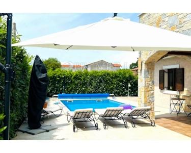 Zum Verkauf steht ein freistehendes rustikales Steinhaus auf der Insel Krk mit einer Wohnfläche von 162 m², aufgeteilt in Erdgeschoss und Obergeschoss. Im Erdgeschoss befinden sich Eingangsbereich, Gäste-WC, Küche mit Ess- und Wohnbereich, Abstellraum, Schlafzimmer mit eigenem Bad sowie eine 28 m² große Terrasse mit Sommerküche.