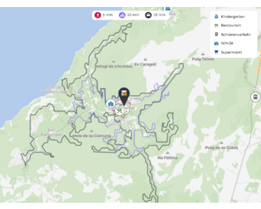 Die Immobilie befindet sich in einer malerischen Lage in Valldemossa, Spanien, umgeben von einer Vielzahl an Freizeit- und Versorgungsmöglichkeiten. In unmittelbarer Nähe, nur wenige Gehminuten entfernt, finden Sie zahlreiche Restaurants wie "Aromas" und "Can Marió", die kulinarische Genüsse bieten. Für den täglichen Bedarf steht der Supermarkt "Coaliment" ebenfalls in kurzer Distanz zur Verfügung.