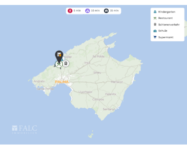 Die Umgebung bietet zudem eine gute medizinische Versorgung mit Ärzten und Kliniken wie dem "Hospital de Caubet" in erreichbarer Nähe. Für kulturelle Abwechslung sorgen Theater wie "Casa des Poble" und "Son Amar", die in kurzer Fahrzeit erreichbar sind.