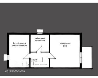 Im voll unterkellerten Bereich befindet sich ein großer Hobbykeller, der sich hervorragend als Fitnessraum, Büro oder Freizeitraum nutzen lässt. Weitere Kellerräume bieten reichlich Abstellfläche.