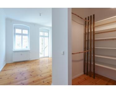 •Schlafzimmer mit begehbarem Kleiderschrank und neuen Regalen