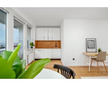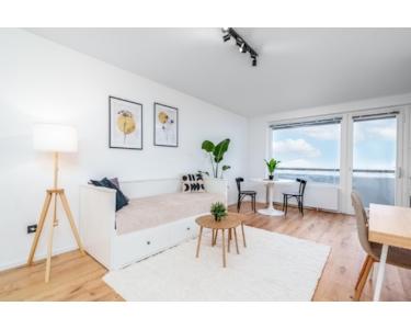 Willkommen im DEBA-Hochhaus, einer Ikone der Münchner Nachkriegsmoderne des renommierten Architekten Ernst Maria Lang. Dieses Apartment im Stadtteil Solln wurde soeben aufwendig modernisiert und bietet urbanen Wohnkomfort auf höchstem Niveau.