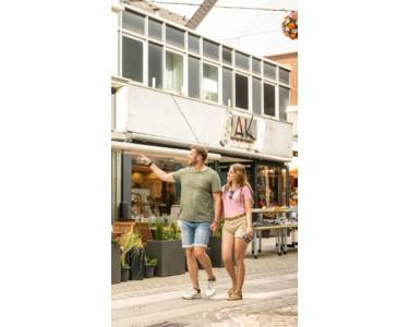 breite, lichtstarke Fensterfront in der Fußgängerzone